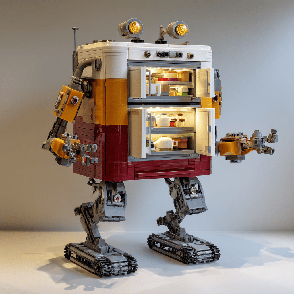 Robotwinkelier vult koelkast met metalen blokken!